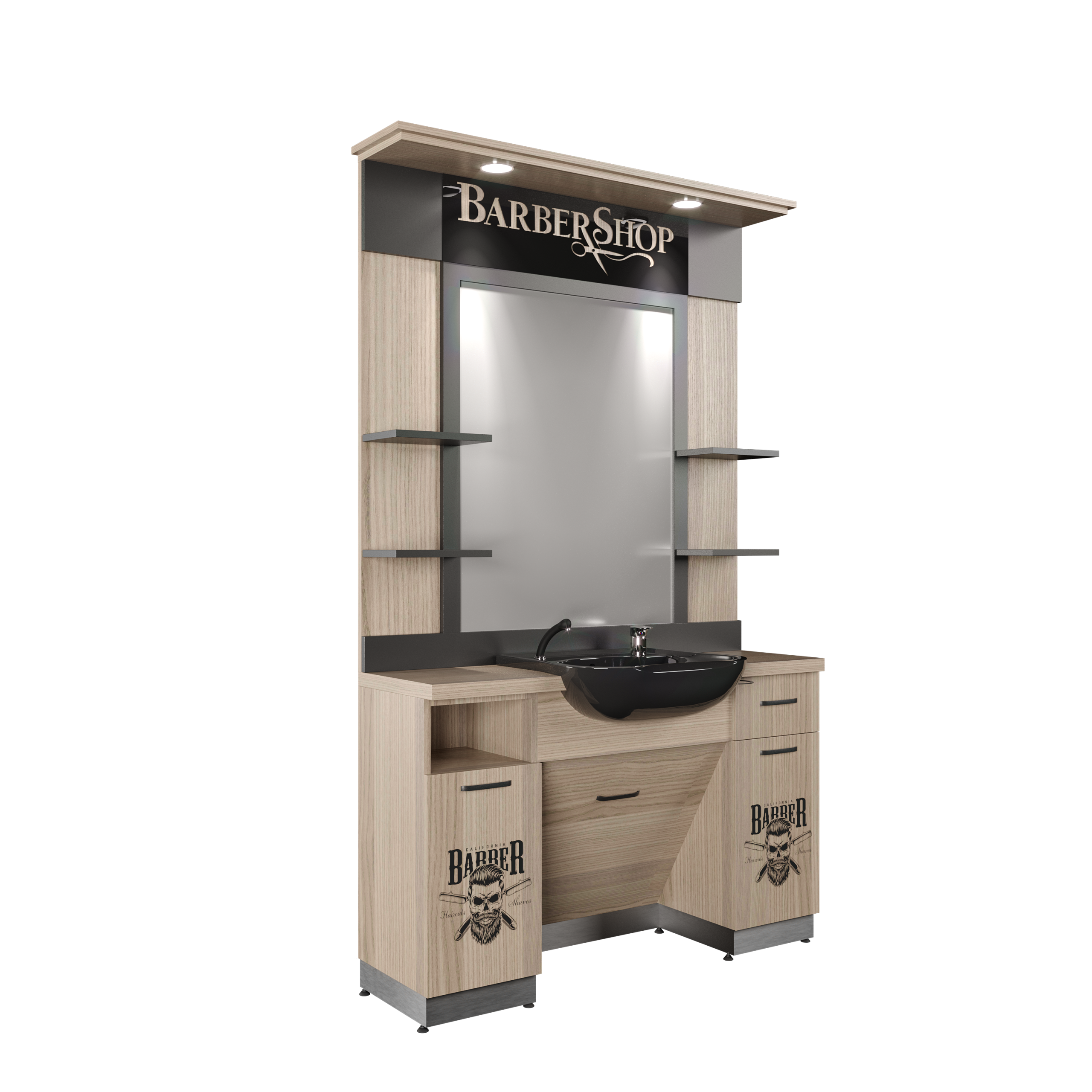 Bring elegance and efficiency to your barbershop with the Classic Barber Station. Designed with CNC-cut metal text and logos, this barber unit combines modern aesthetics with durable materials. Equipped with LED spotlights and multiple storage solutions, it’s ideal for professional barbers who value style and practicality.