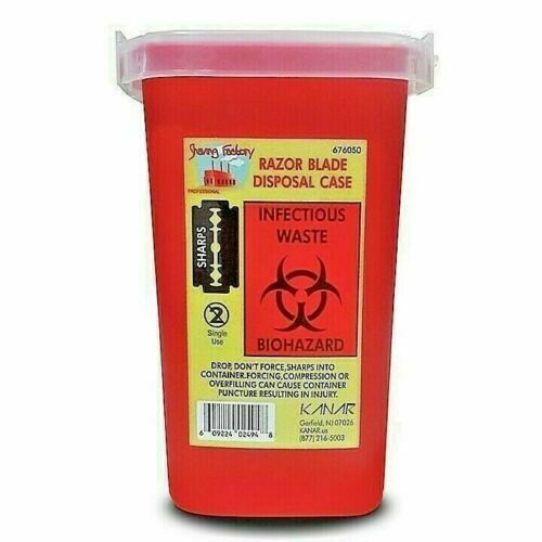 Red razor blade/sharps disposal case.